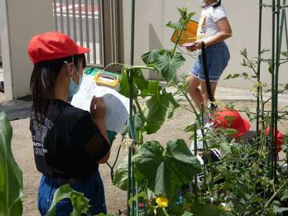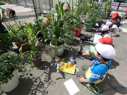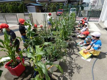2年生の育てている野菜は、プランターですが、とてもたくましく、すごいスピードで育っています。