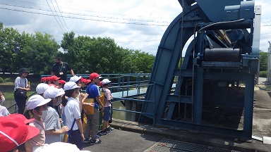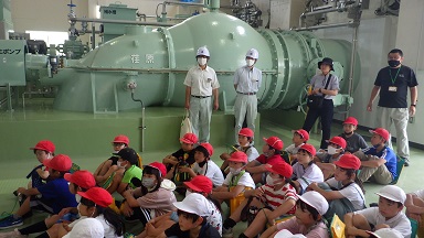 日頃は、なかなか見ることのない排水機場の中も見せてもらいました。