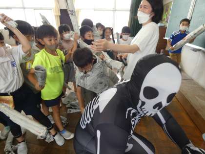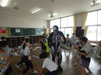 6月20日 2年生 図工 公開日 2022/06/20 更新日 2022/06/22 お知らせ 廊下を走ったり、トイレのスリッパを整頓しないと悪のゴミダーがやってくるぞと話していたら、タイミングよく怖い風貌のゴミダーがやってきました。しかし、元気な2年生に返り討ちにあってしまいました。みんな元気でよいです。