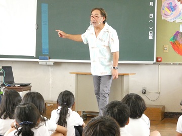 6月21日 2年生 生活の授業 阿部夏丸さんのお話を聞きました 公開日 2022/06/21 更新日 2022/06/21 特色ある学校づくり推進事業 2年生は、川の生き物について阿部夏丸さんのお話を聞くことが出来ました。子どもたちは、夏丸さんの川で遊ぶ子どもたちからも学び成長しているという生き方に共感し、わくわくしながらお話を聞きました。 畝部愛ランドの池のザリガニ釣りでも分かるようにもともと2年生の子どもたちは、生き物が大好きです。秋に予定されている家下川の観察に期待が膨らみます。