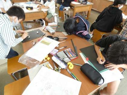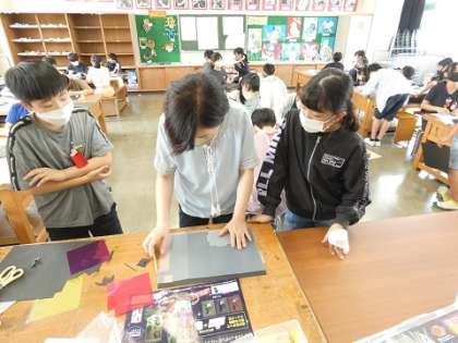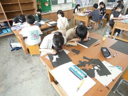 6年生の図工では、切り絵のようなしゃれたランプシェードを作っていました。どんな作品ができるか楽しみです。
