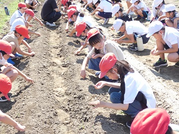 3年生 大豆の種まき 公開日 2022/06/27 更新日 2022/06/27 お知らせ JAの方をお招きして、大豆の種まきをしました。JAの方にいろいろと教えてもらいながら、先週作った畑の畝に種をまきました。一つの穴に2つづつ、虫に食べられないようにコーティングした大豆の種をまいていきました。