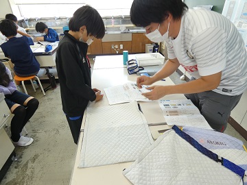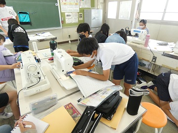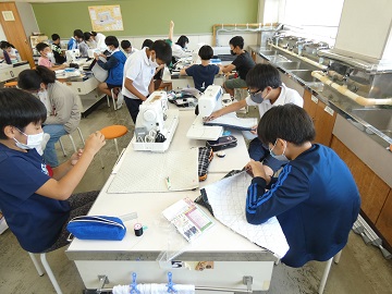 家庭科で作っているナップサックが出来上がってきました。作業が進んでくると仕事ぶりにも熱が入ります。