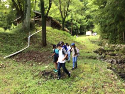 六所山の自然の中で班ごとにオリエンテーリングをしています。