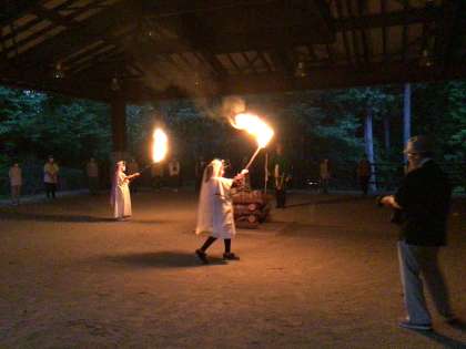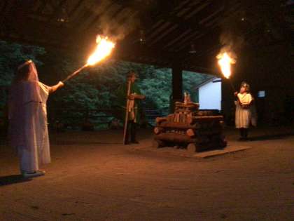 山の学習 キャンプファイヤー 公開日 2022/07/06 更新日 2022/07/06 学校行事 屋根付きファイヤー場でキャンプファイヤーを行いました。女神と山の神入場からキャンプファイヤーが始まりました。