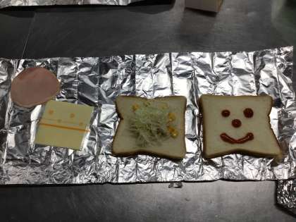 山の学習 朝食 カートンホットピザ 1 公開日 2022/07/07 更新日 2022/07/08 学校行事 食パンに具をのせて、アルミホイルにつつんでまるめ、更に新聞紙につつんで、牛乳パックにいれて焼きます。