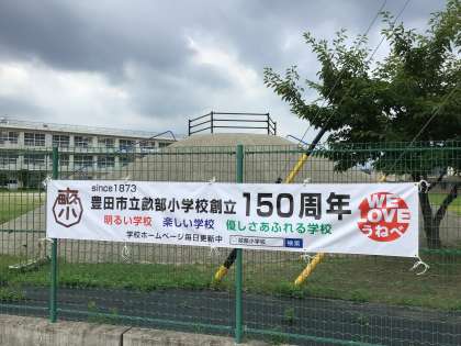 7月11日 畝部小学校創立150周年記念事業 公開日 2022/07/11 更新日 2022/07/11 お知らせ 畝部小学校創立150周年記念事業実行委員会が、学校の校舎とフェンスに横断幕を取り付けてくれました。