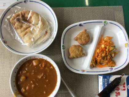夏休み前最後の給食 公開日 2022/07/20 更新日 2022/07/20 お知らせ 夏休み前最後の給食は、人気ナンバーワンメニューのカレーライスではなくカレーナンでした。昔と給食のメニューも変わりました。