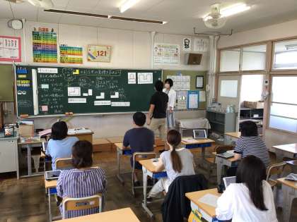 先生たちの研修 公開日 2022/07/27 更新日 2022/07/27 お知らせ 夏休みに先生たちは授業力をつけるための研修をしました。今日は、児童の気持ちになって算数の授業を受けながら、授業力をアツプするためのヒントを探しました。 子どもたちのつぶやきやひょうじょうをよく見ながら、バトンを受け渡すように、子どもたちが発言をつないでいくような授業をするためにはどうしたらよいかを考えました。
