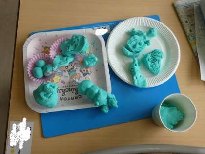 1年生 図工の授業3 公開日 2022/09/06 更新日 2022/09/06 お知らせ おいしそうな粘土の料理ができあがりました。「いいね♡」と書かれた投票用紙を持って、作品の採点をしました。インスタのようですね。