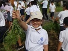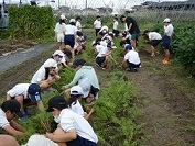 4年生は、地域の方にお借りした畑でニンジンを育てています。今日は、大きなニンジンを作るために間引きをしました。間引きしたニンジンにも小さな実ができていました。