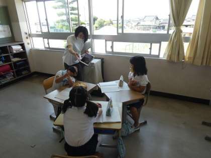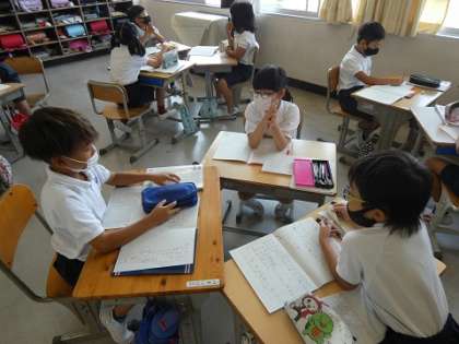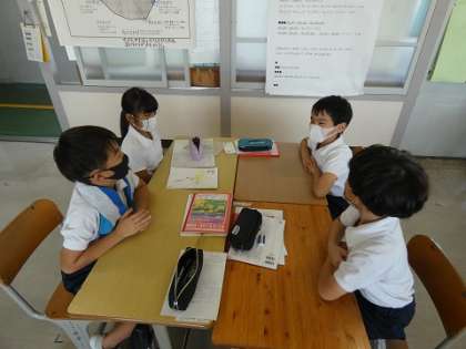 グループで嬉しくなる言葉を集めて、言葉をつなぐ練習をしました。(コミュニケーション能力の育成)