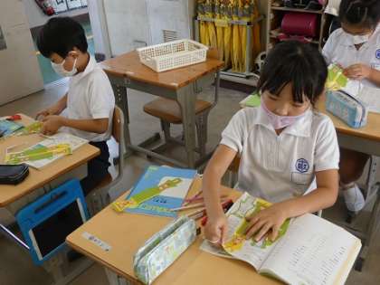 3年生 算数 公開日 2022/09/13 更新日 2022/09/13 お知らせ 3年生の算数では、少人数で授業をしています。天秤を使った内容では、教科書をくりぬいて、部品を作り、紙製の天秤を作りました。教科書にこんなものがついているなんてびっくりしました。
