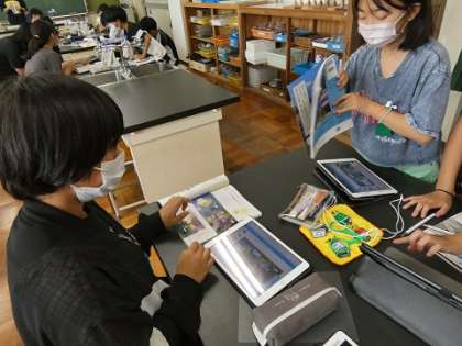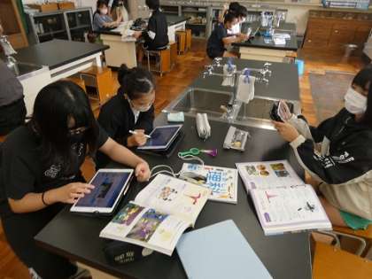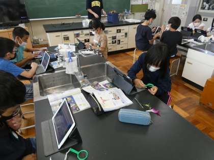 朝顔の花の観察は実物を使い、調べ学習や部位の名前のテストは、ipadをと使い分けして授業をしています。