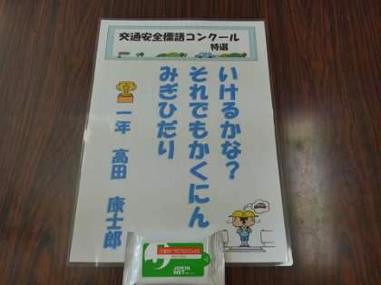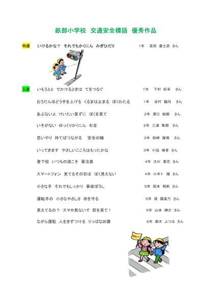 たくさんの応募者の中から入選と特選が決まりました。交通安全事故ゼロを目指しましょう。