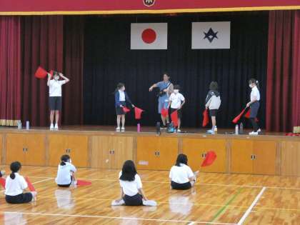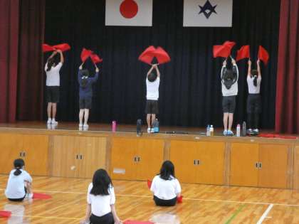 5年生 体育の授業 公開日 2022/09/28 更新日 2022/09/28 お知らせ 旗の練習のリーダーが動きを教えています。高学年は、自分たちで協力して動きを考えたり、お教えあったりすることを大切にしています。