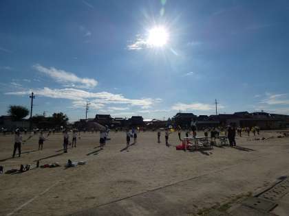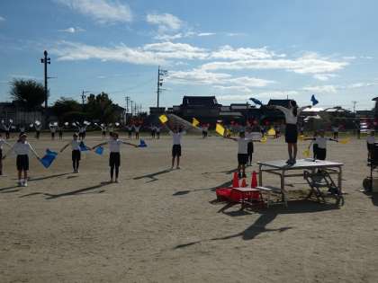 大玉送りとリレー、ダンス、旗の表現活動の練習を力いっぱい頑張っています。ダンスの表情がとてもよくなってきて、青空の太陽のように輝いていました。
