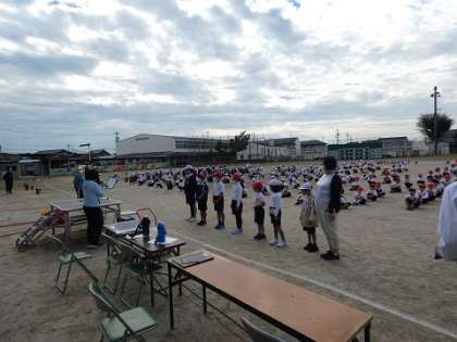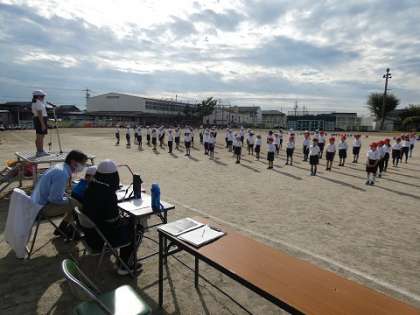 運動会開会式では、150周年記念マスコット優秀作品の表彰式も行われます。児童の入賞者は、表彰の練習をしました。