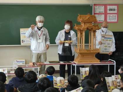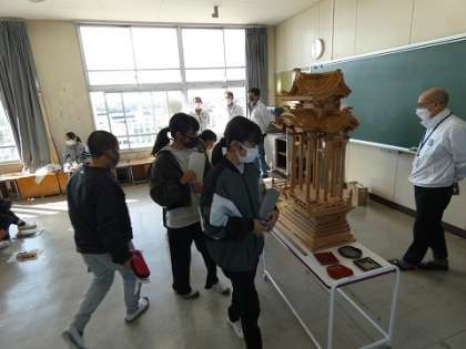 10月28日 6年生総合的な学習「ぼくの夢 私の夢」 公開日 2022/10/28 更新日 2022/10/28 お知らせ 校区の平林仏壇様の協力で日本伝統工芸士会の皆様に講師として来ていただき、三河仏壇について学びました。彫金、蒔絵、金箔の伝統工芸から一つを選んで体験しました。