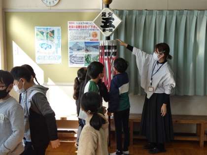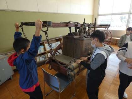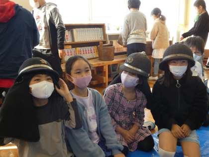 いろいろな資料をさわったり、身に着けたり、動かしたりしました。
