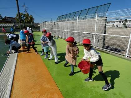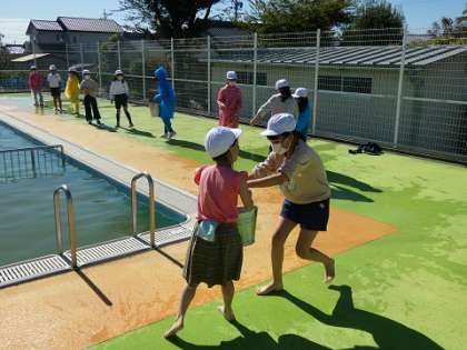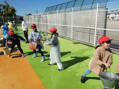 3年生 社会科5 公開日 2022/11/02 更新日 2022/11/02 お知らせ 2回戦の予定でしたが、アンコールがやまずに、3回戦目もしました。子どもたちはへとへとになりました。(水汲みをしていた先生はもっとへとへとでしたが) へとへとになった子どもたちだからこそ、昔の消火活動の大変さを知ったのではないでしょうか。