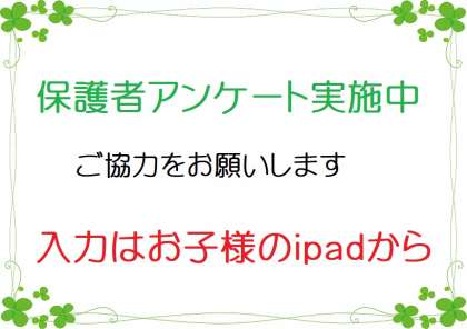 保護者アンケートを実施しています。保護者の皆様のご意見を学校経営に生かしていきたいと思います。ご協力をお願いします。