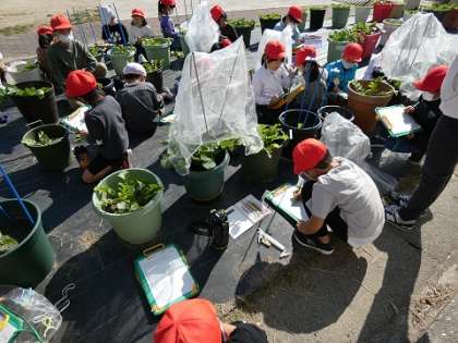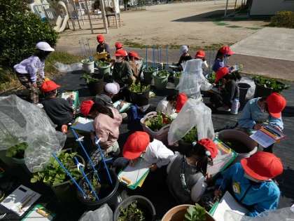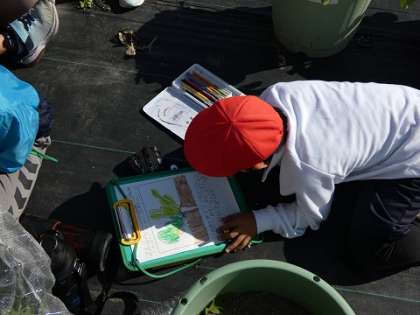 大根の栽培をしています。水やりや手入れをした後で、観察記録を書きました。