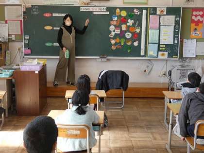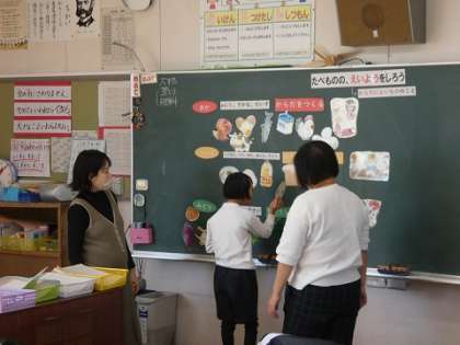 保健の先生に食べ物の栄養について教えてもらいました。