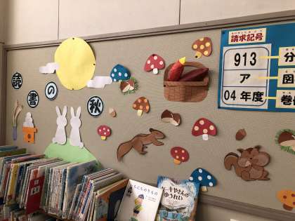 11月4日図書館ボランティア活動 公開日 2022/11/10 更新日 2022/11/10 学校の特色ある活動 11月4日 図書館ボランティアさん達が本棚の陳列がわかりやすくなる表示を作成してくださいました。おすすめの秋の本も紹介されています。