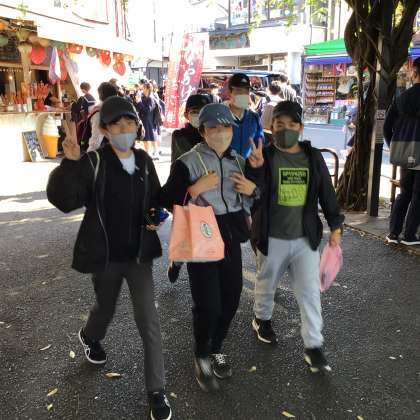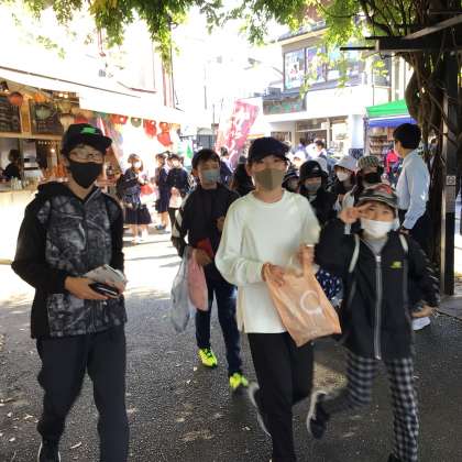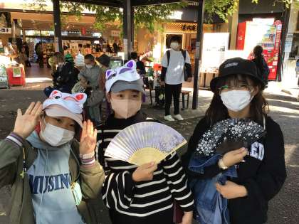 班行動の買い物タイムを終え、二条城に向けて出発しました。たくさん買い物してご機嫌です。
