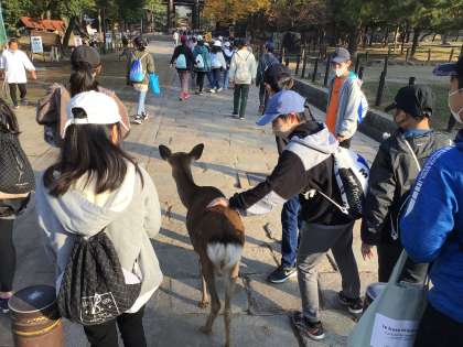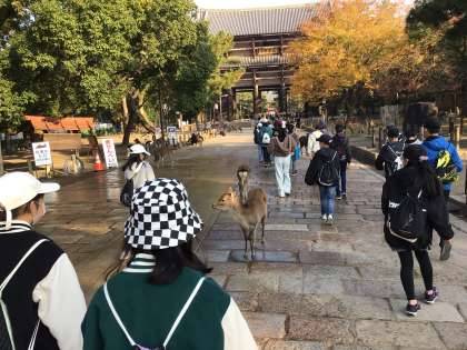 修学旅行 鹿がいる道を東大寺へ