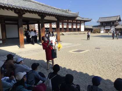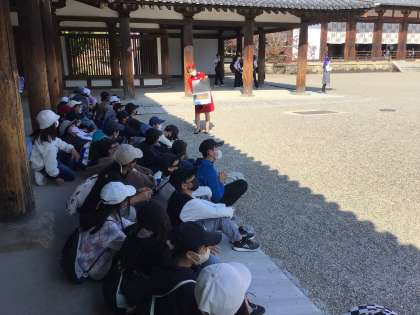 ガイドさんの説明を聞きながら見学しました。子どもたちも建築当時の建築技術に感心している様子です。