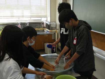 手洗い選択に挑戦しました。慣れない手洗いですが、汚れは、落ちたのでしょうか?