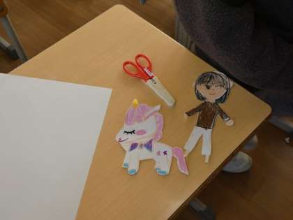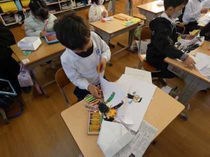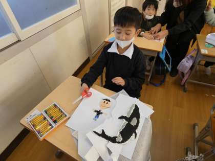 「夢のお城で行きたいところを考えよう」想像をはたらかして、いろいろな乗り物を考えています。