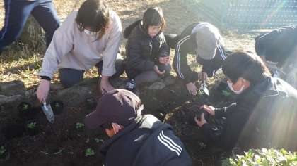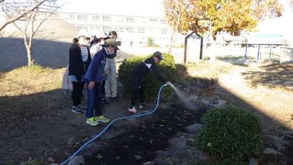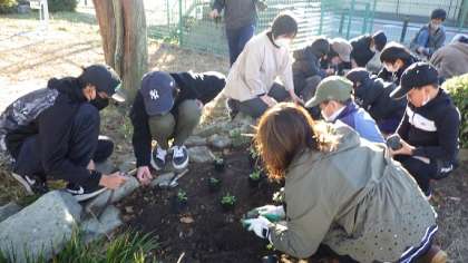 環境美化委員会の人たちが、今日の委員会の時間に畝部ランドの花壇に苗を植えてくれました。苗は、パンジーやノースボール、ビオラなど、うまく育てれば、大きく広がって、たくさんの花を春に咲かせるものばかりです。