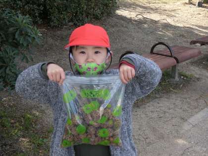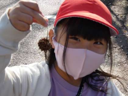 椎の木のどんぐりやネムノキの実、プラタナスの実、落ち葉などをたくさん見つけました。