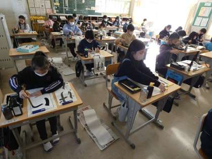 今年から、毛筆になった3年生も「げんき」という文字を丁寧に書いています。