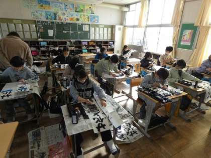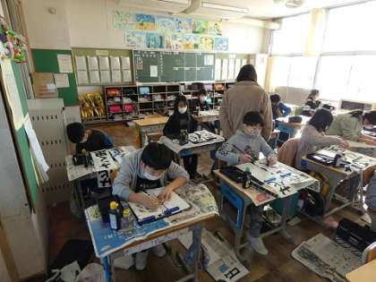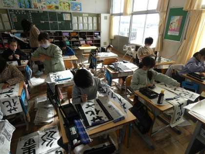4年生は、「花咲く里」という字を書いています。落ち着いた雰囲気で書けていました。