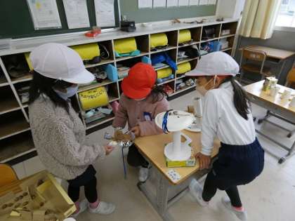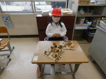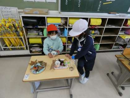 秋集めで集めたもので作った作品をたくさんのお友達に見てもらいました。