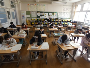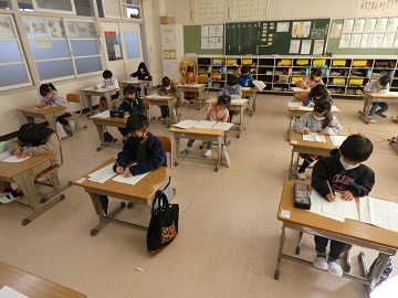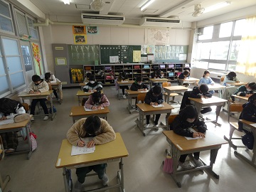 2、3時間目は書初め大会でした。低学年は、硬筆です。1年生は、初めての書初め大会でした。