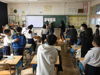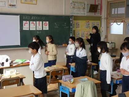 英語で言われた指示を聞いて、前や後ろに進んだり、左や右に回ったりしました。