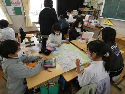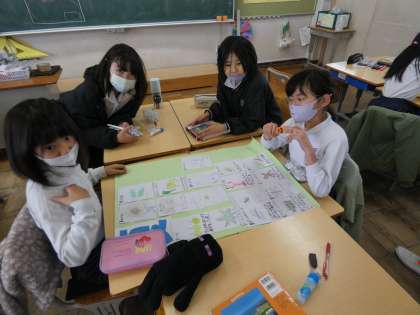 今年度、校庭で見つけた植物や昆虫などの生き物を季節ごとに整理して発表する準備をしました。