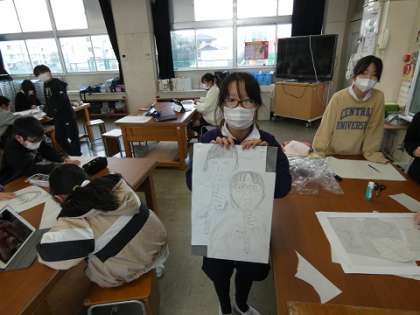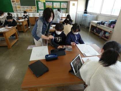 1月25日 5年生 図工の授業 公開日 2023/01/25 更新日 2023/01/25 お知らせ 版画の下絵を描いています。自分が笛を吹いている姿と友達が笛を吹いている姿をipadを使って描いた後、コラージュの技法を使って組み合わせていまいた。出来上がりが楽しみです。