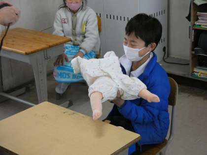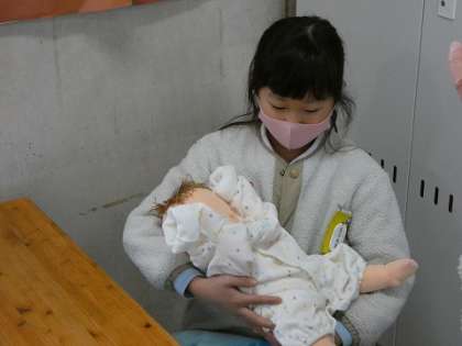 赤ちゃんの人形を、抱いている子どもたちの表情はとても優しかったです。親のわが子を思う気持ちも感じてくれたのではないでしょうか。