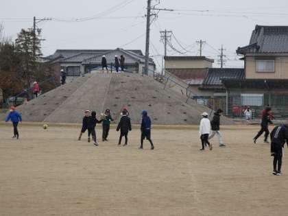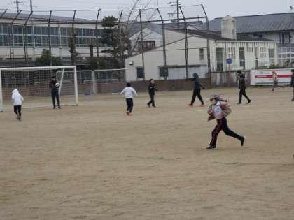 雪が降ってきましたが、いつもよりたくさんの子どもたちが運動場で元気に遊んでいました。