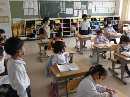 教室からは、はっきりと大きな声で、感情をこめて朗読する子どもたちの声が聞こえていました。どうやら、学習発表会の練習でしょうか、とてもはりきっていました。