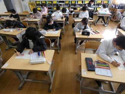 節分に向けて、心の中の鬼をやっつけようと、心の中で自分と向き合いながら、絵を描きました。