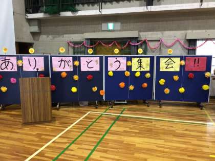 いよいよありがとう集会がはじまります。1年生から5年生も緊張しています。