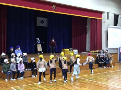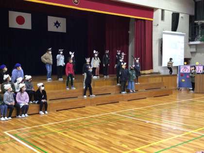 ありがとう集会 5 公開日 2023/03/01 更新日 2023/03/02 学校行事 3番目の出し物は、3年生でした。なんと6年生が1年生から3年生の時の学芸会の劇を再現してくれました。クオリティーの高い演技に6年生は大喜びでした。