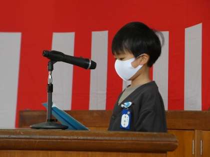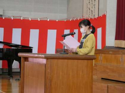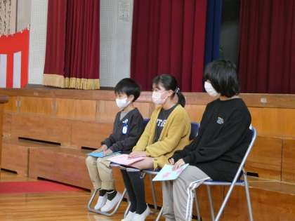3人の代表児童が、全校児童の前で堂々と振り返りと抱負を語ってくれました。